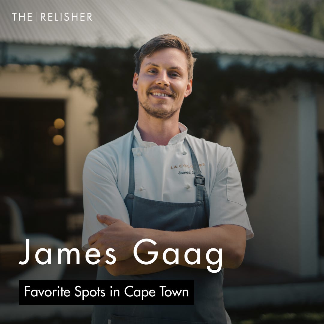 Welcome to The Relisher’s Cape Town edition. This week I sat down with James Gaag, Executive Chef of La Colombe — one of South Africa’s most acclaimed restaurants and part of a group that includes several of the country’s top dining destinations.