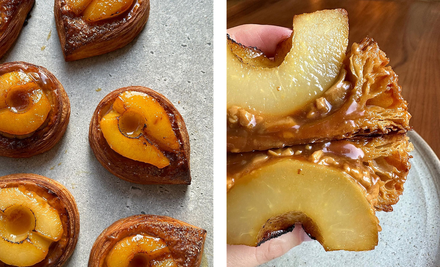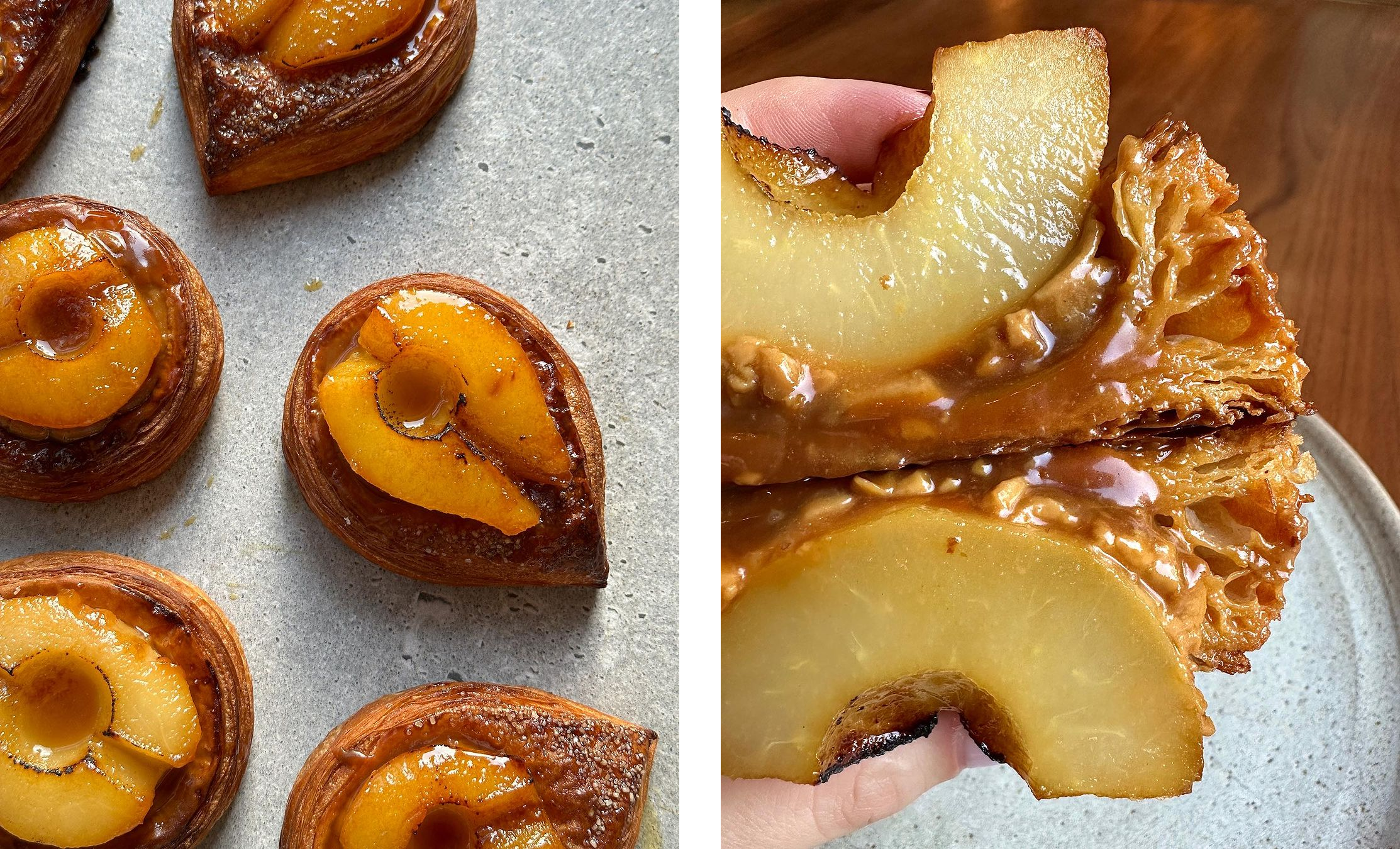 At the moment, I love their beautiful rhubarb pastry — it's an unbelievably good pastry as you can feel the freshness of the fruit. It's as if they picked it this morning. I like to have it with a flat white coffee. If I visit for lunch, I'll order the cheddar sandwich with the sourdough bread. I adore their sourdough bread — how they make it is pure magic and elevates the sandwich. For me, it's worth the trip to Pophams just for this bread.