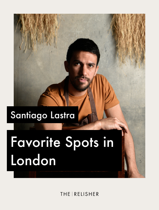 The Relisher is where the world's top chefs reveal their favorite spots in their home cities. This week, we spoke with Santiago Lastra, the chef and co-owner of KOL, a one-Michelin-starred restaurant in London ranked 23rd among the world's best. He's also set to open Fonda later this year.