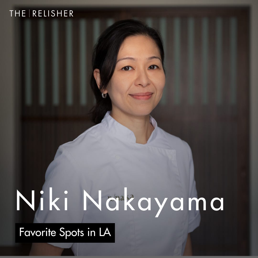 Welcome to The Relisher’s Los Angeles edition! This week, I met with Niki Nakayama, the acclaimed chef behind n/naka—one of LA’s toughest reservations and a Michelin-starred destination for modern kaiseki with a California twist.