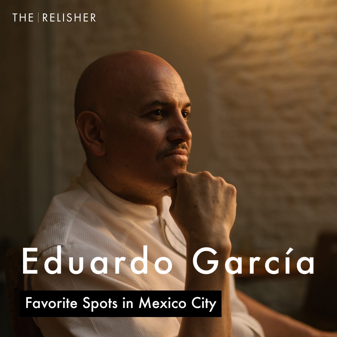 Welcome to The Relisher’s fourth Mexico City edition! This week, I met Eduardo García, the chef and owner of Máximo Bistrot in Mexico City—a regular on Latin America’s 50 Best Restaurants.